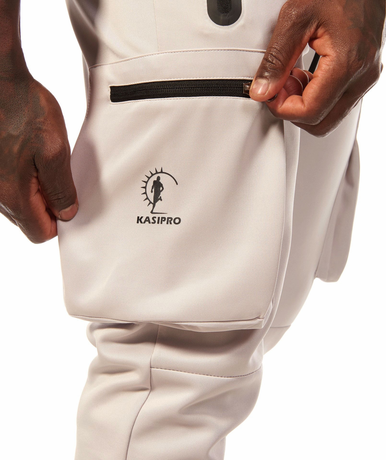 Kasipro Hi-Tech cargo joggers are made from premium fabric with exceptional craftsmanship. Featuring handy ankle zippers that can be adjusted for a comfortable fit, multiple pockets and a utility loop for your shirt or towel. These joggers are designed with sweat wicking, breathable and 4-way stretch construction which provides excellent freedom of movement. Ideal for workouts or casual wear.